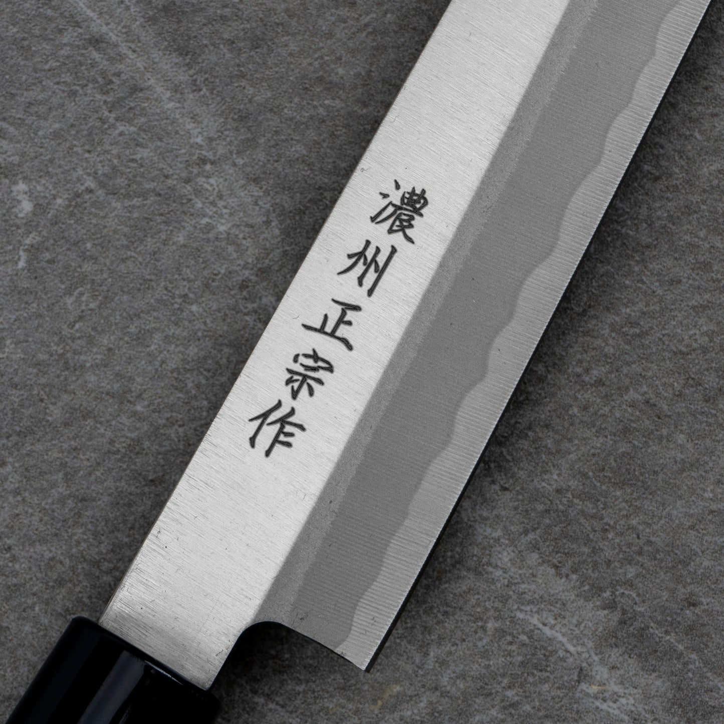 Masamune Yoshimitsu, to seria noży dla koneserów stali rdzewnych wiedzących jak o nie prawidłowo zadbać. Stal ta jest silnie reaktywna i pokrywa się patyną w bardzo krótkim czasie. Nieprawidłowe użytkowanie takie jak niewycieranie do sucha szczególnie po krojeniu cytrusów itd. tych noży spowoduje pokrywanie się rdzą. Rekompensuje to wysoka twardość noży, duża agresja cięcia oraz łatwość ostrzenia. Prosimy o przemyślane zakupy.